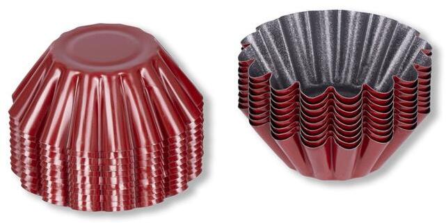 Biztosan Te is ismered és kóstoltad már a finom linzer kosárka sütit, amit mindenki annyira szeret!  Sokan, sokféle töltelékkel készítik ezt a hagyományos süteményt, készíts Te is családodnak igazi, finom házi sütiket!  Receptet itt találsz >> Ezzel a 20 db normál méretű kosárka sütőforma tapadásmentes készlettel hagyományos kosárka alakú süteményeket készíthetsz. A készletben 20 db kosárka formát találsz. A sütőforma felső átmérője: 6,5 cm, talpának átmérője: 3,5 cm. Használata: Kenjük ki zsiradékkal (vajjal vagy margarinnal) a kis sütőformákat. Érdemes korong alakú tésztákat szaggatnunk és és ezeket beleigazítani a kosárka formákba. Egy tepsibe rakjuk a tésztával megtöltött kis formákat és előmelegített sütőben aranybarnára sütjük.    Még melegen kiütögetjük a kosárkákat a formából. Fontos, hogy mosogatás után töröljük szárazra.