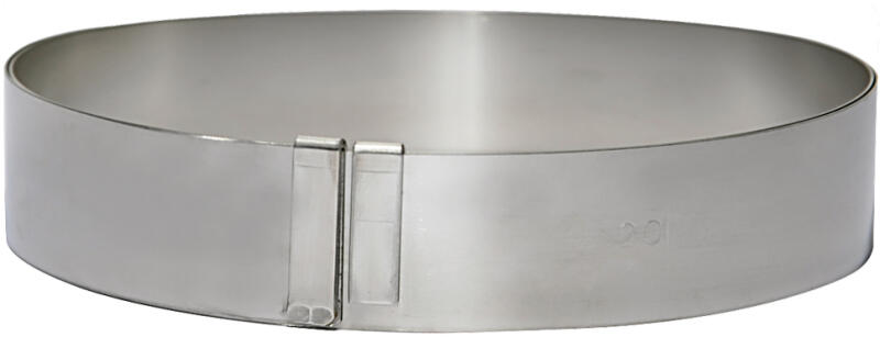 A rozsdamentes acélsütőforma / keret praktikus segítője minden sütés szerelmeseinek és profi cukrászoknak. A forma pontosan megtartja a torta, torta vagy krém formáját, és a belső jelölésekkel könnyen beállítható a mérete. Sütés után kissé nyissa ki a formát, és vegye ki a tésztát.