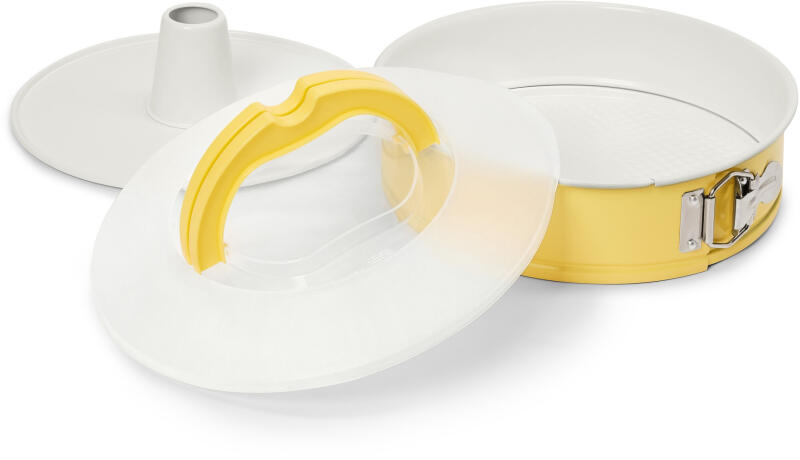 Rugós, nyitható sütőforma szállítófedéllel Szín: Kívül sárga, belül fehér Félig áttetsző fedél Anyag: Acél sütőforma, belseje GREBLON® Q-LINE B1000 tapadásmentes bevonattal Fedél: polipropilén Csat: 18/10-es nemesacél Méretek: Magasság kb. 6,8 cm Ø kb. 26 cm Tartalom: Második aljjal, használati útmutatóval, 2 online elérhető receptajánlattal Súly: Forma: kb. 400 g Fedél: kb. 150 g Töltőtömeg: Kb. 2,7 l Figyelmeztetések: A fedél nem használható sütőben 3 az 1-ben: sütőforma, szállító- és tárolódoboz2 aljjal: hagyományos süteményhez vagy kuglófhozTeljes mértékben PFAS-mentes alapanyagokból készült kiváló tapadásgátló bevonat, csökkenti a tészta letapadását, könnyen tisztíthatóHordozófüles fedél2 online elérhető receptajánlattal
