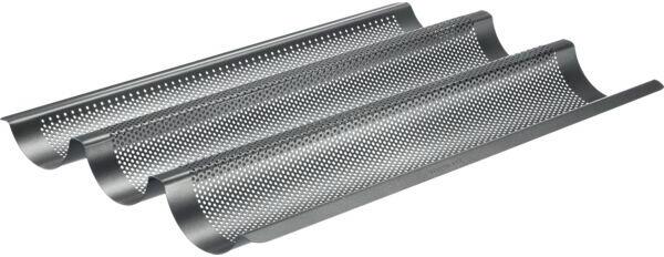 Westmark bagettforma kiváló minőségű tapadásmentes bevonattal. A speciális perforáció biztosítja a hő ideális eloszlását sütés közben. Hőálló 230 °C-ig. A forma szürke színű, és fémből készült.