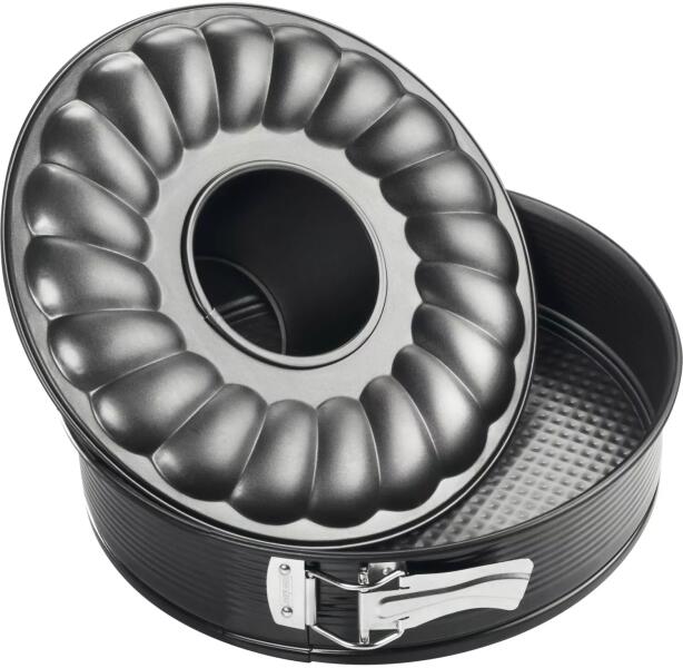 A Zenker Black 24 cm átmérőjű tortaforma két aljjal és tapadásmentes felülettel rendelkezik, amely megkönnyíti a sütést és a tisztítást. A fekete szín és a minőségi anyagok hosszú élettartamot és megbízhatóságot garantálnak.